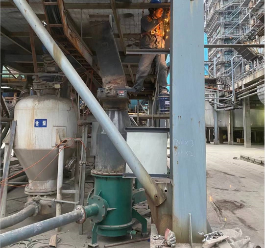 料封泵一般安裝在料倉(cāng)底部,新投產(chǎn)的料封泵應(yīng)先把活動(dòng)風(fēng)管外腔加入足量的潤(rùn)滑油,再通過執(zhí)行機(jī)構(gòu)對(duì)活動(dòng)風(fēng)管進(jìn)行調(diào)整,來改變噴嘴與噴頭之間的距離,通過調(diào)試來選擇一個(gè)比較理想的位置同時(shí)記下標(biāo)尺刻度,開始正常工作。停機(jī)時(shí)先使噴嘴與噴頭閉合并使管道內(nèi)物料全部輸送完才能停風(fēng)。料封泵只有在料面具有一定高度時(shí)才能正常工作,如果料位低于一定值時(shí)輸送量就會(huì)減少,如果突然停氣等原因使管道堵塞時(shí),應(yīng)使噴嘴與噴頭閉合吹起直至管道暢通。
